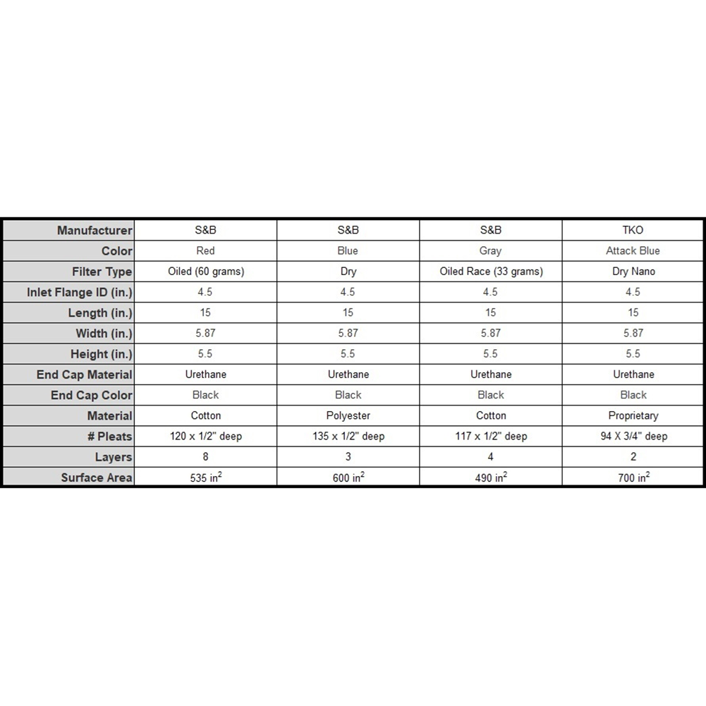 We've got you covered if you favor a dry filter or an oiled filter. Choose from our 4 options: