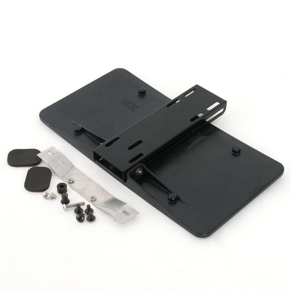 The Show & Go license frame allows you to display or stow away the front license “for show” with a simple one hand motion to retract and stow the license plate or to pull it out and allow it to swing up into the display position. The system can be installed by anyone with reasonable mechanical skills and hand tools. The license frame mechanism is mounted under the front bumper.