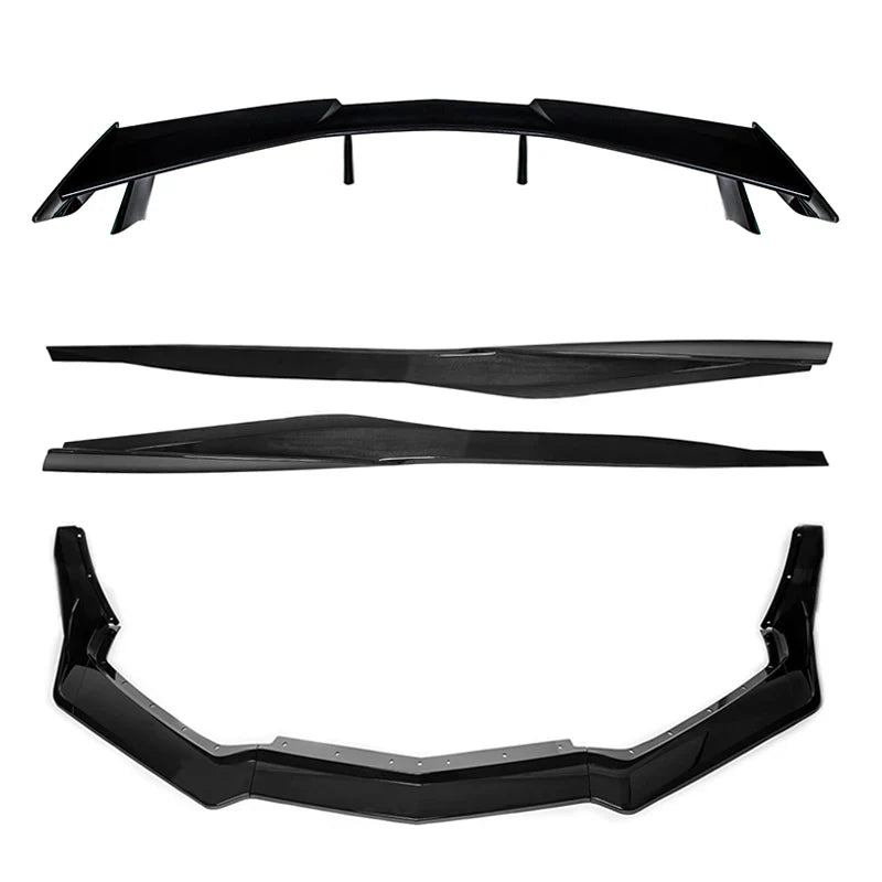 The Chevrolet Corvette C8 EOS Track Edition Full Body Kit is a complete set of body enhancements that are designed to improve the aerodynamics, handling and appearance of your Corvette. The kit includes a front splitter, side skirts, and a rear spoiler. All of the components are made from high-quality ABS Plastic and are designed to fit perfectly on your Corvette. The Corvette C8 Track Edition Front Splitter is designed to increase downforce at the front of the car, which helps to improve traction and stability. The Corvette C8 5VM Side Skirts Rocker Panels help to reduce drag and improve airflow over the sides of the car. The Corvette C8 Z51 Extended Rear Spoiler helps to increase downforce at the rear of the car, which helps to improve traction and stability.