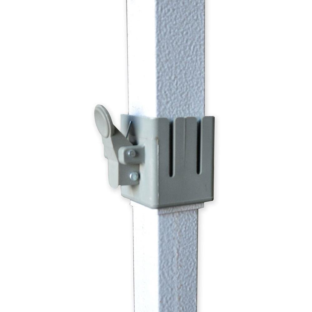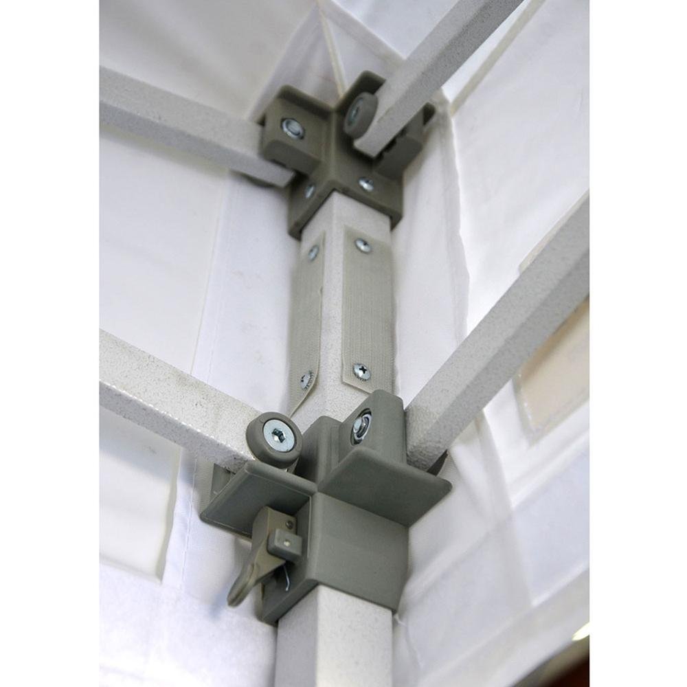 The heavy duty, industrial-strength, powder-coated frame takes only seconds to open. No tools required, simply pull open with one or two people and lock into place and you get 100 square feet of instant shade. This canopy has water resistant, rugged 600 denier polyester fire retardant fabric and four height adjustments taking the head height to 6’ 11”.